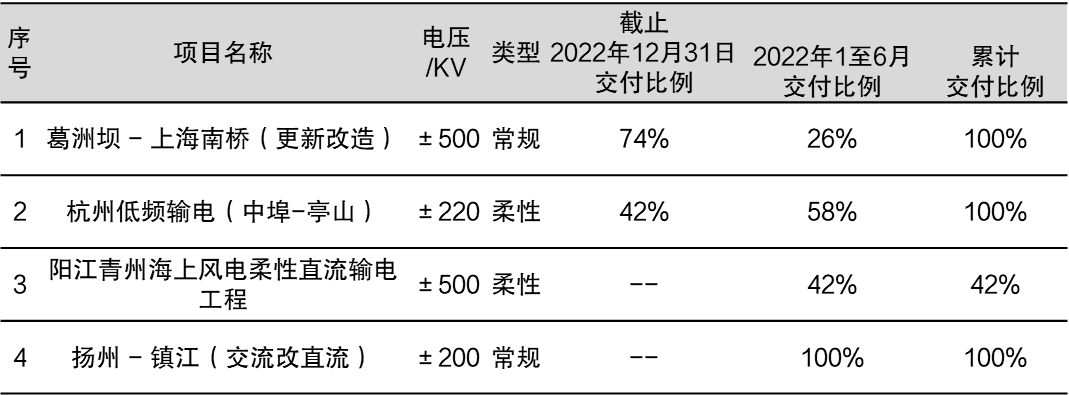 在輸配電領域,2023年上半年,本集團實現銷售收入人民幣1.75億元,較去年同期增長約5.2%。其中,高壓直流輸電和柔性直流輸電領域,本集團分別交付了揚州-鎮江±200千伏直流輸電工程、220千伏中埠-亭山柔性低頻輸電示范項目、陽江青州五、青州七海上風電場海纜集中送出工程等多個項目的訂單產品。