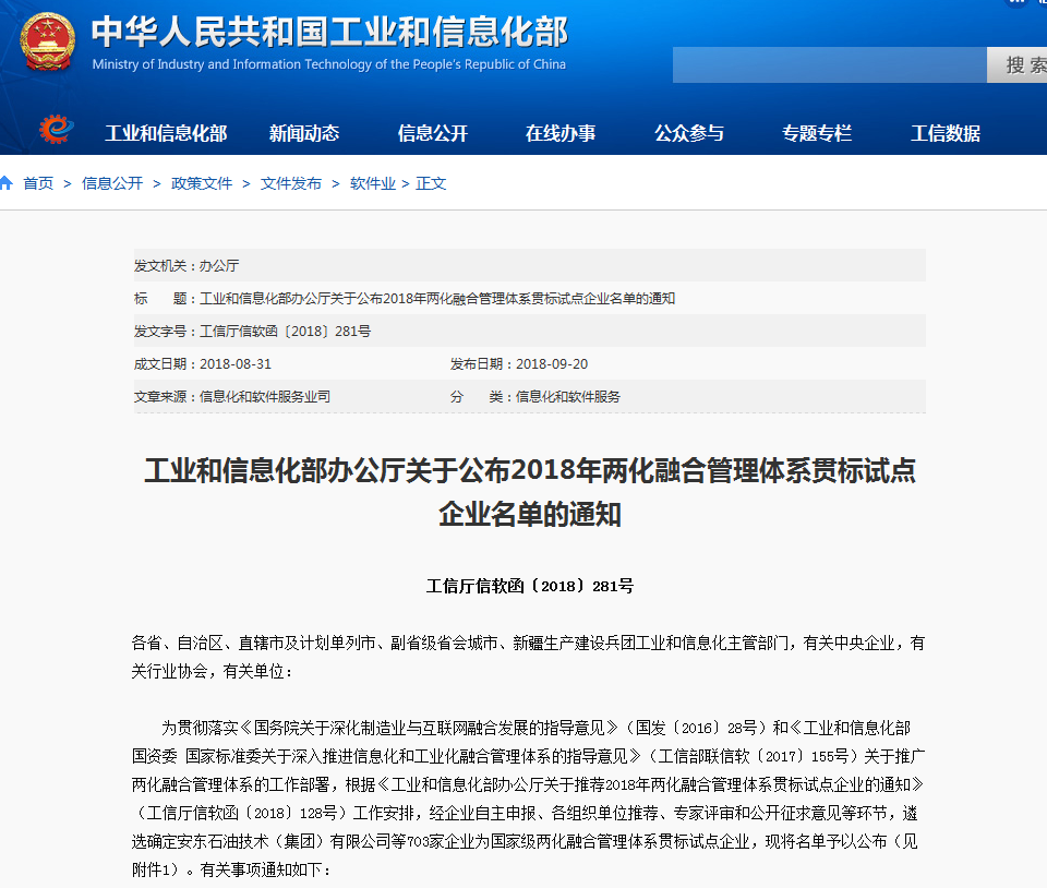 兩化融合是信息化和工業化高層次的深度結合,以信息化帶動工業化、以工業化促進信息化,以數據為核心驅動要素,管理體系為重要手段,提高資源配置效率,實現中國制造向“中國智造”轉型。根據《工業和信息化部辦公廳關于推薦2018年兩化融合管理體系貫標試點企業的通知》(工信廳信軟函〔2018〕128號)工作安排,經企業自主申報、各組織單位推薦、專家評審和公開征求意見等環節,遴選確定703家企業為國家級兩化融合管理體系貫標試點企業,無錫賽晶公司名列其中。這是繼今年6月,無錫賽晶公司成功評為省級兩化融合貫標試點后,時隔3個月,又被評為國家級兩化融合貫標試點,證明了無錫賽晶公司一直以來堅持兩化融合道路的正確性和前沿性。