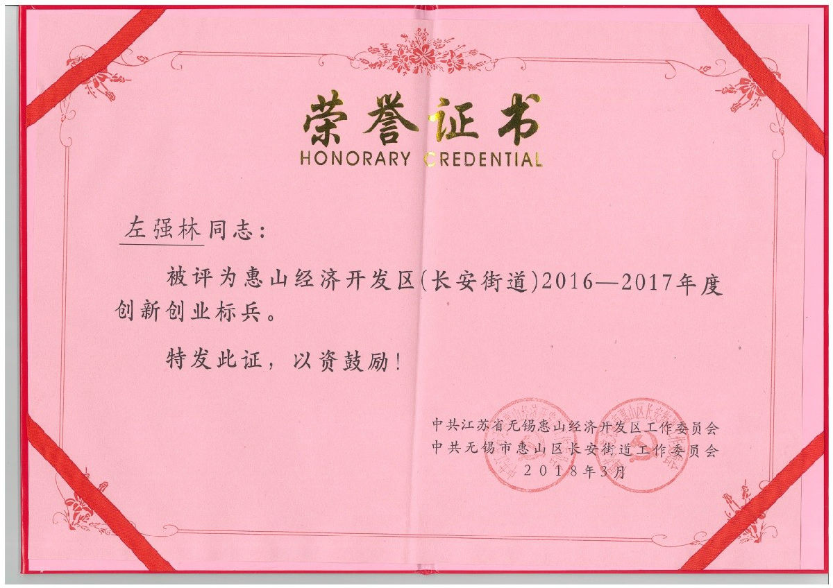 無錫賽晶電力電容器有限公司總經(jīng)理左強(qiáng)林榮獲惠山經(jīng)濟(jì)開發(fā)區(qū)(長安街道)“2016-2017年度創(chuàng)新創(chuàng)業(yè)標(biāo)兵”榮譽(yù)稱號,成為開發(fā)區(qū)創(chuàng)新創(chuàng)業(yè)的典范和榜樣。這也是左強(qiáng)林總經(jīng)理自2017年被評選為惠山區(qū)“先鋒英才計劃”管理先鋒之后獲得的又一項(xiàng)榮譽(yù)。