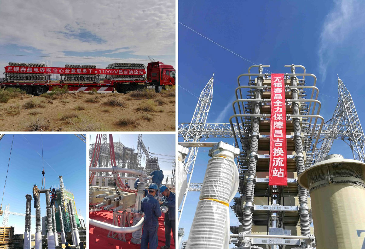 2017年10月10日,賽晶集團(tuán)下屬子公司無錫賽晶電力電容器有限公司(以下簡稱無錫賽晶)中標(biāo)的特高壓直流輸電±1100kV昌吉換流站項(xiàng)目濾波器組電容器順利安裝完成。