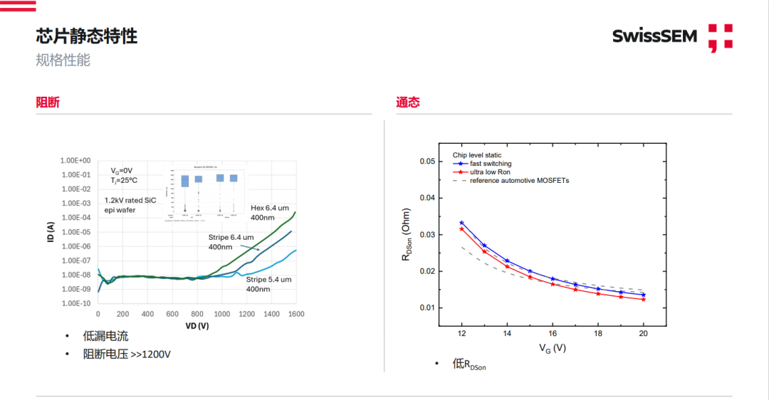 不僅如此,源于出色的設(shè)計(jì)和工藝,賽晶SiC MOSFET芯片在高溫工作條件下,展現(xiàn)出了極佳的靜態(tài)和動(dòng)態(tài)特性,并且達(dá)到了行業(yè)一流水平的1200V/13mΩ@25度(24mΩ@175度)。此外,我們還研發(fā)出了1400V/17mΩ產(chǎn)品,以適應(yīng)更高電驅(qū)1000V平臺(tái)的發(fā)展需求。