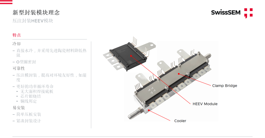 HEEV封裝SiC模塊具有低雜感、體積小等特點(diǎn),采用壓注封裝且一改經(jīng)典串聯(lián)水冷模式采用并聯(lián)無(wú)底板設(shè)計(jì)大大提高了其散熱效率,能夠?qū)iC芯片的性能得到更充分的發(fā)揮,助力客戶(hù)實(shí)現(xiàn)高達(dá)250kW最緊湊電驅(qū)的實(shí)現(xiàn)。