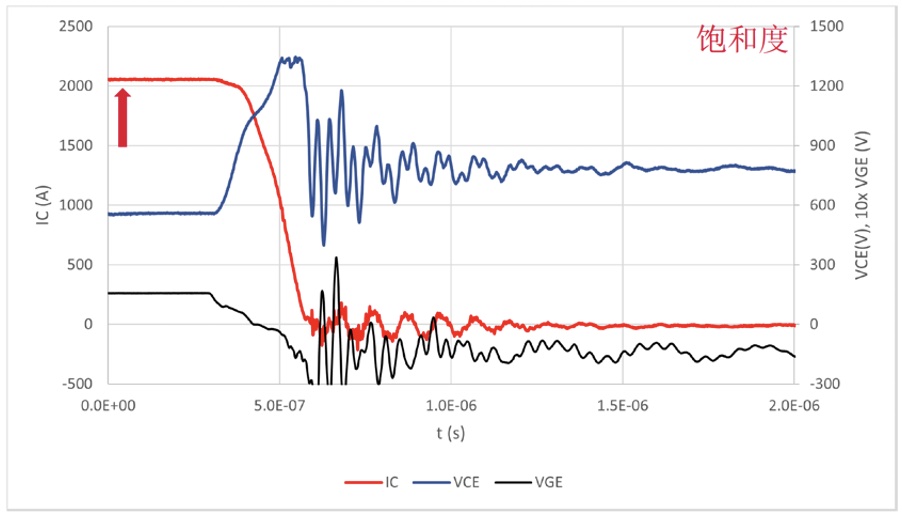 增加電流IC=1500A (=2.5倍標稱)2000A (>3倍),VDC=800V